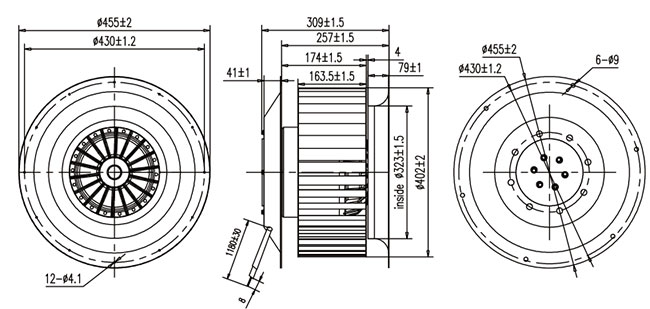 單進風前傾式離心風機根據(jù)風機外形可分為蝸殼前傾式離心風機和常規(guī)前傾式離心風機兩種。蝸殼前傾式離心風機共有120mm、133mm、140mm、150mm、160mm、180mm等六種。常規(guī)前傾式離心風機有200mm、225mm、250mm、280mm、315mm、355mm、400mm、450mm等八種。