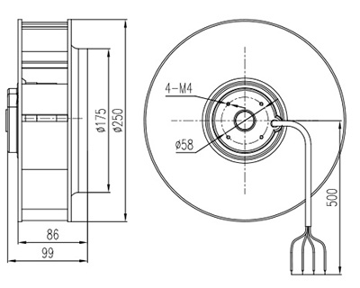 | YWFB2E250P | 230 | 50 | 0.7 | 150 | 2500 | 1300 | 4 | 75 | ⑦ |