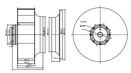 后傾式離心風機由過載熱保護外轉子電機、高效后傾式圓弧形離心葉輪兩部分組成。葉輪全部采用模具化生產,經精密動平衡機器高速校驗,具有體積小,效率高,風量大,振動小,噪音低,性能優越,安裝調試方便等優點,是空調、凈化、冷凍行業較理想的配套產品。廣泛適用于賓館、飯店、學校、工廠等場所和民用、工業建筑的通風換氣。
