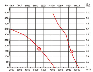 ①性能參數:由4極和6極額定電壓為380-400V,頻率50Hz的三相異步電機組成,最大風量為10250m3/h和7300m3/h。