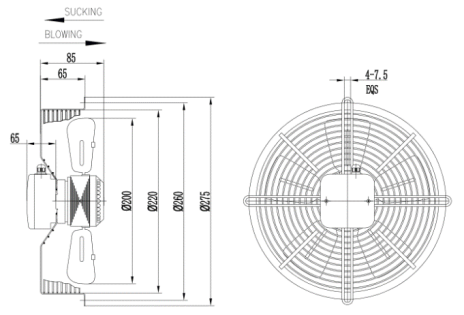 | YWF2E200 | 230 | 50/60 | 0.28/0.31 | 60/69 | 2300/2500 | 420/510 | 2 | 47/48 | ①② |