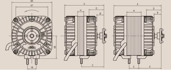 ①性能參數:安裝支架螺絲間距為18mm,鐵芯厚度有12.5mm,20mm,25mm,30mm,40mm,45mm六種規格,從3W到34W共9種型號的罩極電機產品供客戶選擇。額定電壓有220~240V, 110~115V兩種。轉速為1300/1550rpm,電機順時針或逆時針旋轉,氣流方向有吹風式和吸風式。