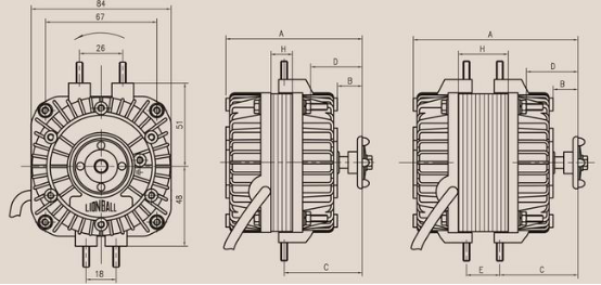 該款電機裝有兩個支架安裝角,一側的螺絲間距為18mm,與之相對應的一側螺絲間距為26mm。根據電機鐵芯厚度和繞線參數的不同,共有輸出功率為3W到34W等9種型號的電機供客戶選擇。額定電壓有220~240V,50/60Hz和 110~115V,50/60Hz兩種。對于客戶需求的不同的引出線長度、前后端蓋的樣式、后端蓋是否帶螺紋孔、特殊的使用環境等均能按要求設計定做。為最大限度的發揮電機性能,我司可提供風葉、安裝支架、網罩、法蘭等產品附件,購買前請詳細說明風葉氣流風向和傾斜角度。產品可作為商業冷柜冷庫、制冰機、冷風機、冷水機、冷凝機組、中央空調、取暖器、啤酒機、攪拌機等設備的理想配套產品。